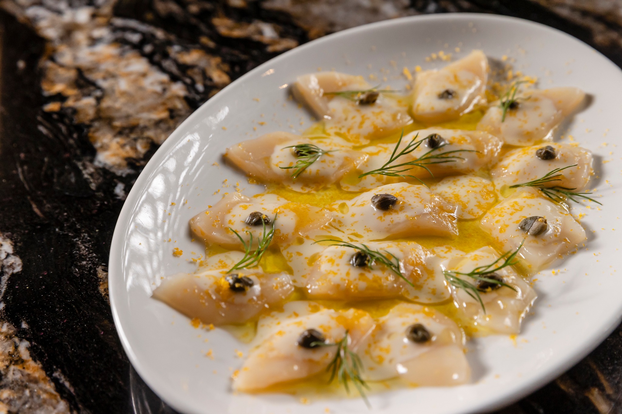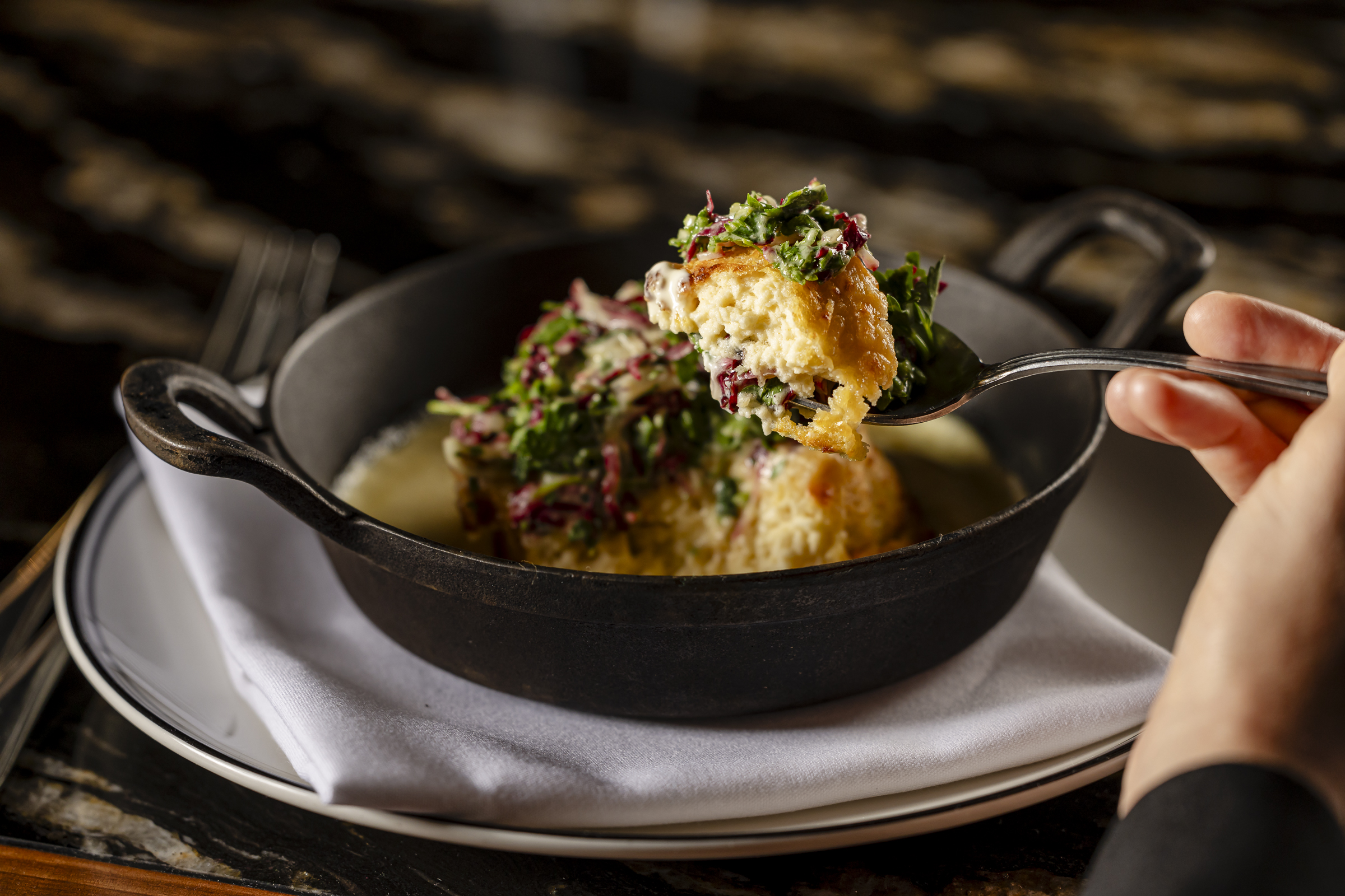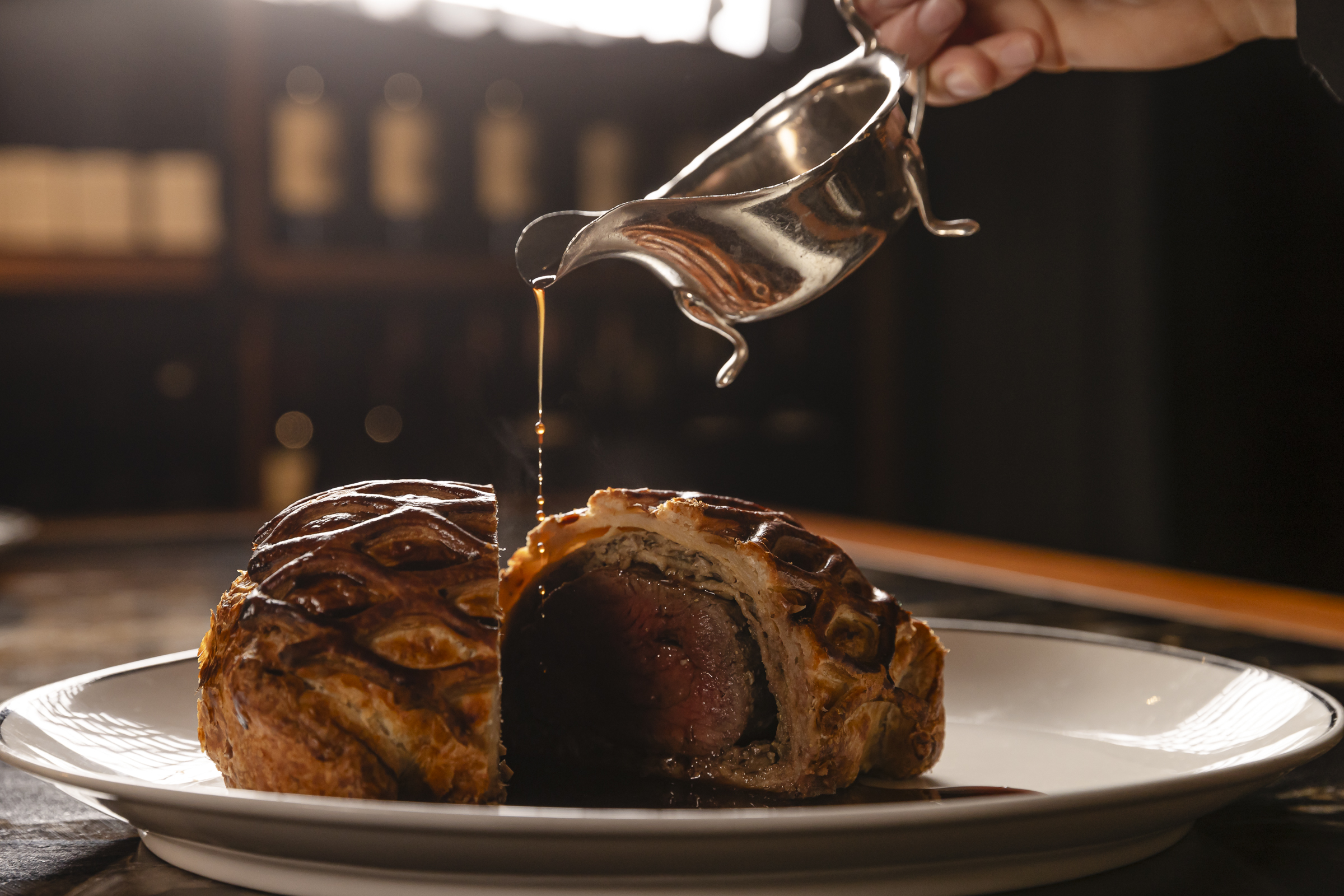 The menu includes our signature Beef Wellington, a selection of top quality steaks and fresh seafood from our Marble Bar.